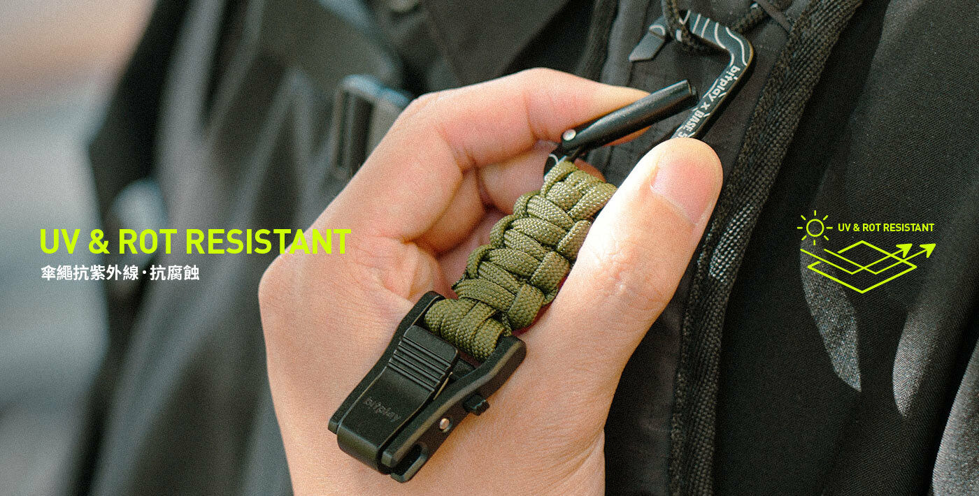 採用美軍指定的Atwood Rope MFG高科技傘繩材料,輕盈卻極其堅固,可承受至249公斤的抗拉強度