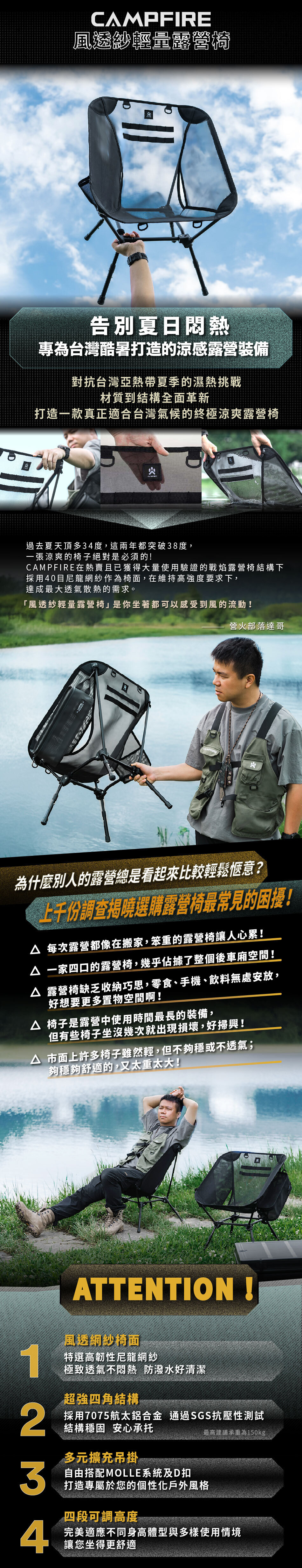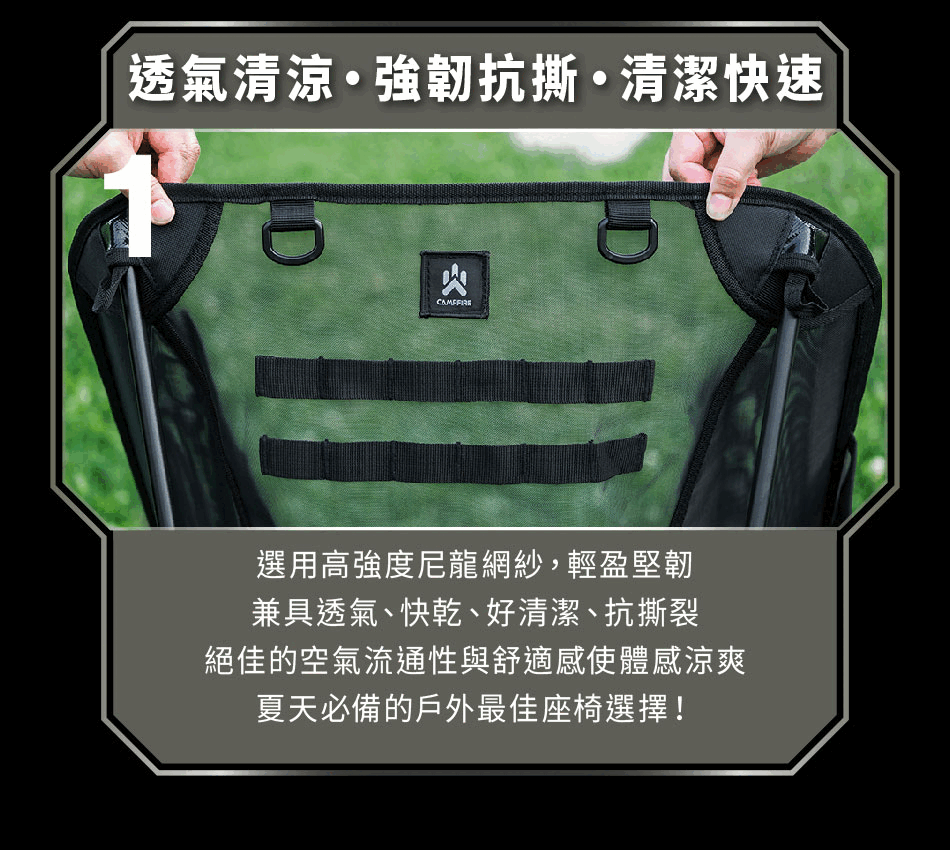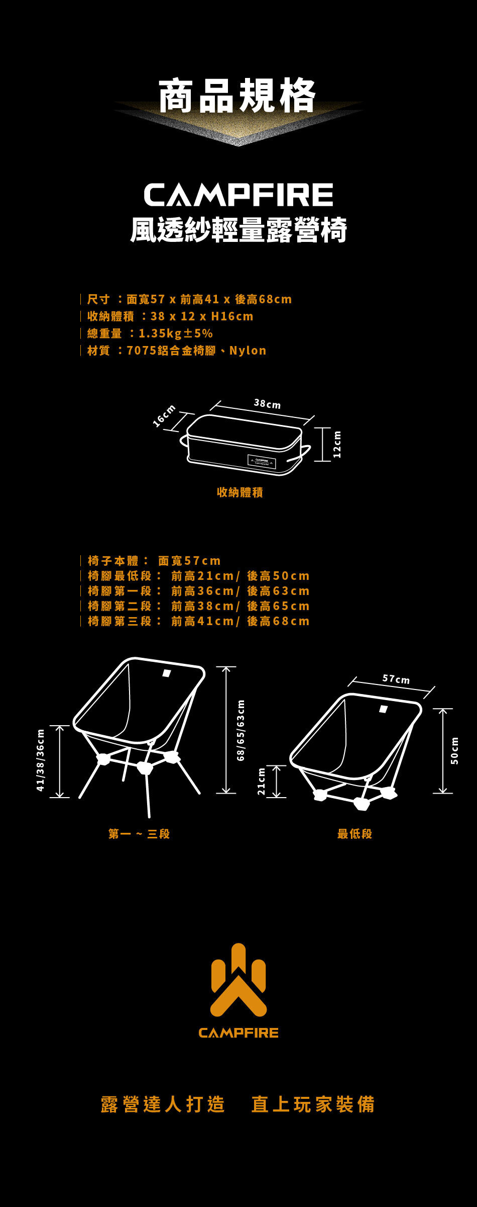 內容物:風透紗露營椅腳架*1套、風透紗露營椅面*1、收納袋*1