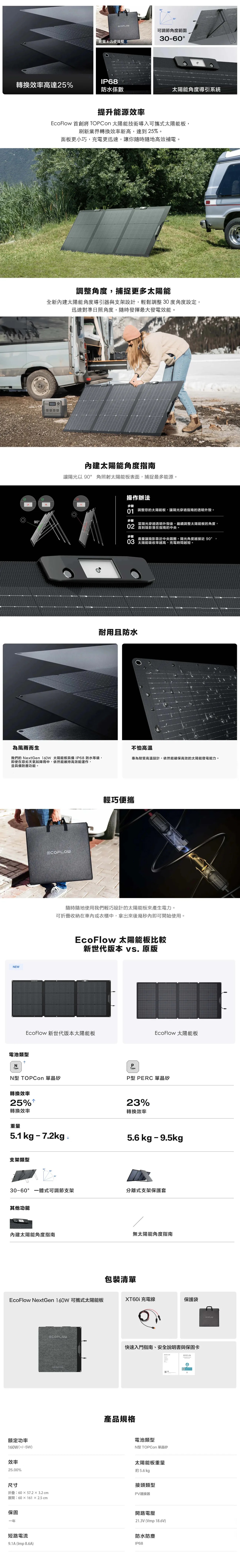 EcoFlow NextGen 160W 可攜式太陽能板、XT60i充電線、