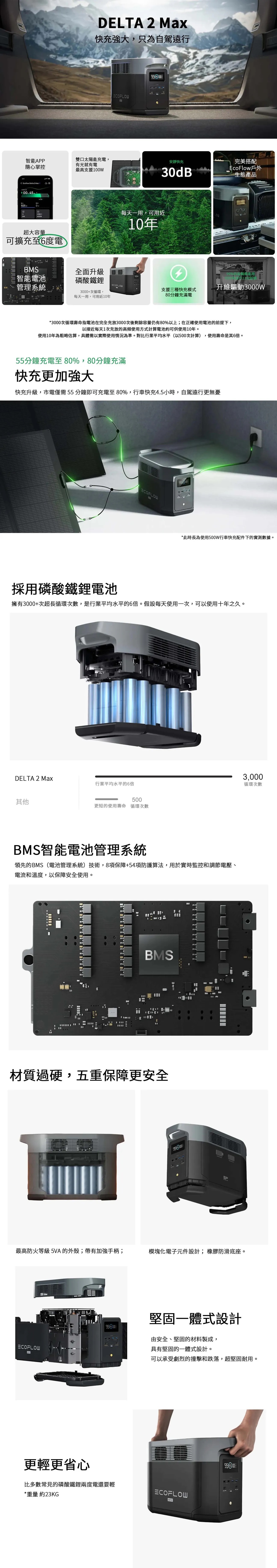 額外電池:支援最多兩顆 DELTA 2 Max Smart Extra 電池/ DELTA Max Smart Extra 電池