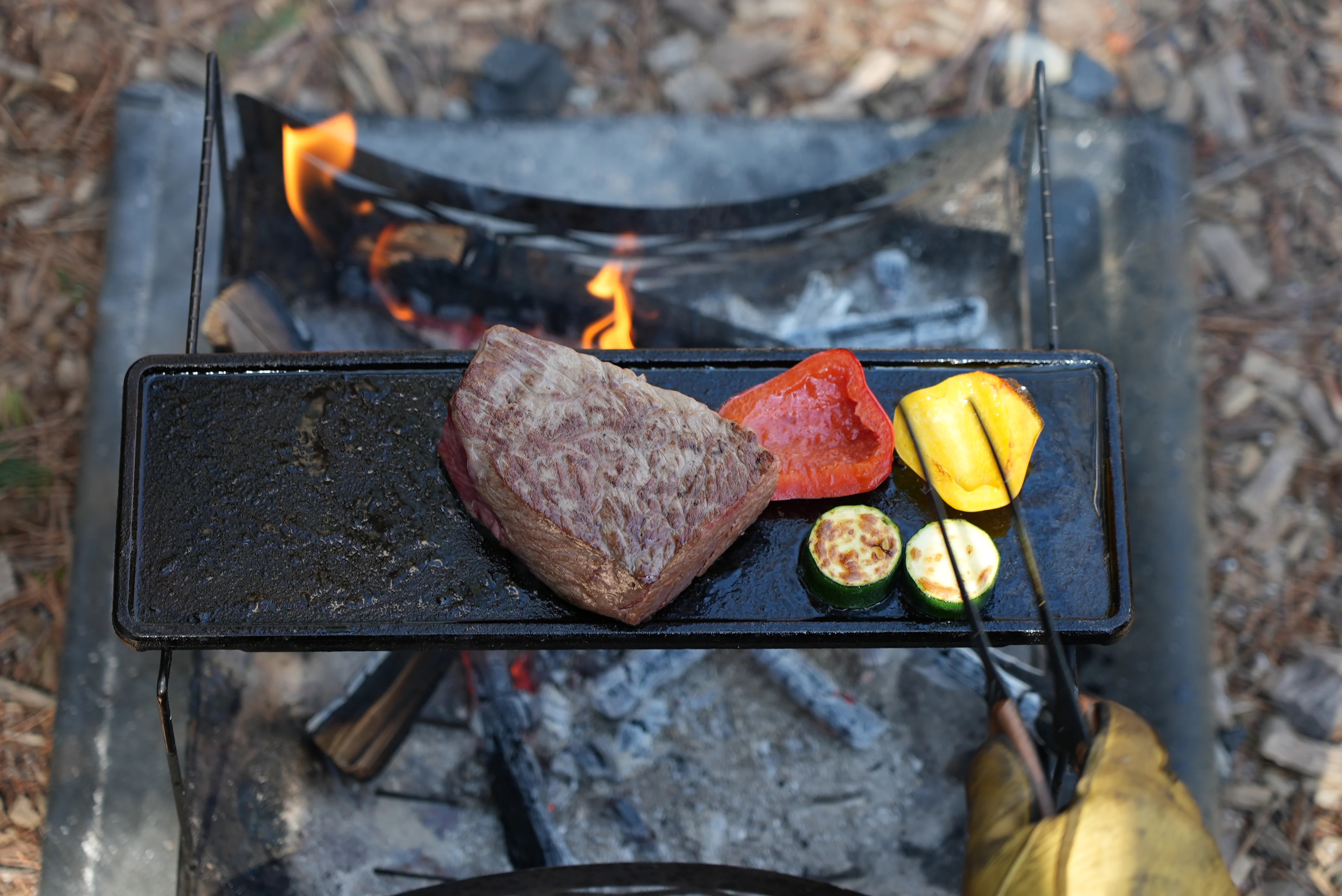 於MAKULITE2 焚火台上可以同時放兩塊使用。 可應對家庭料理的場景。 也可以和焚火台所附贈的伍德搭配使用。