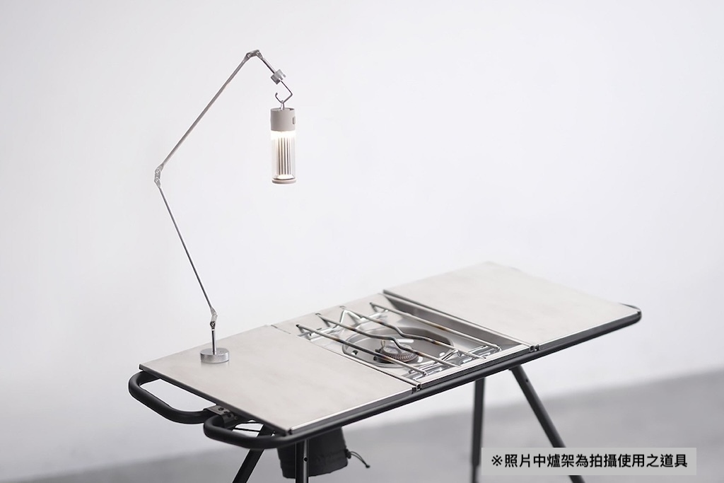不鏽鋼桌面可加裝 Graph Arm 磁吸支架等擴充配件,打造專屬你的露營工作站。
