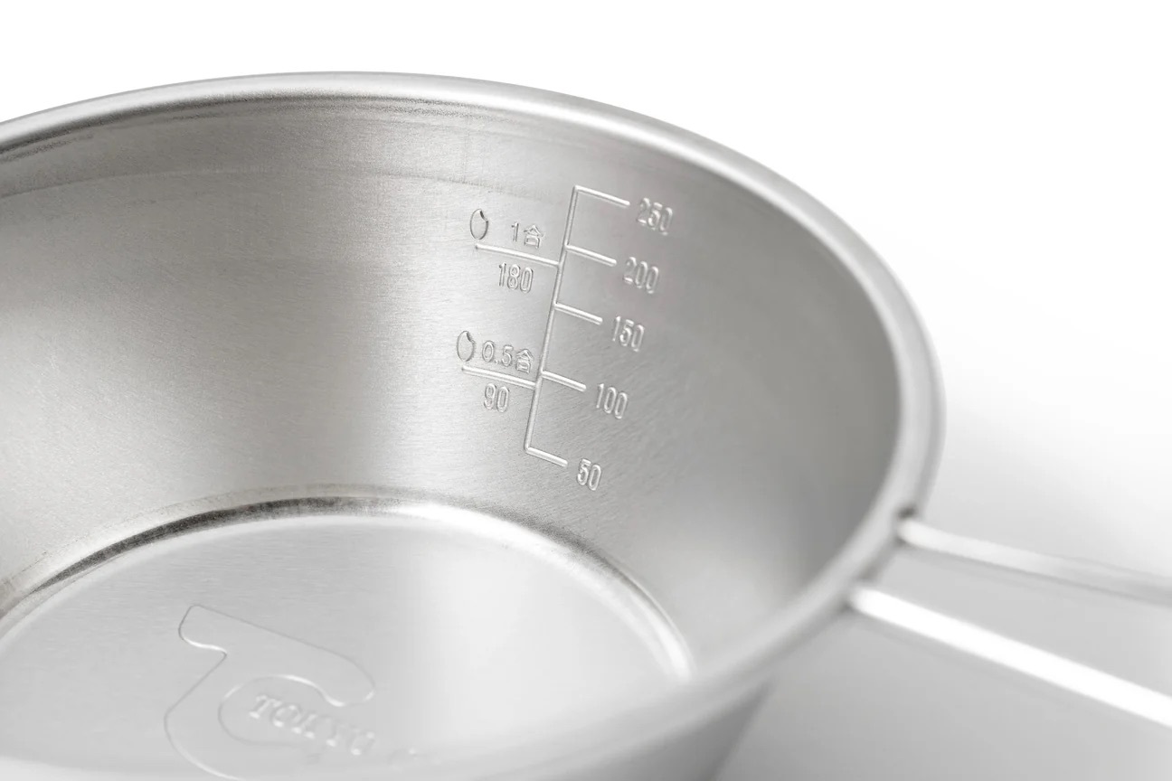 在金型之町「燕三條」製作的雪拉杯。具有可測量米和水的刻度。