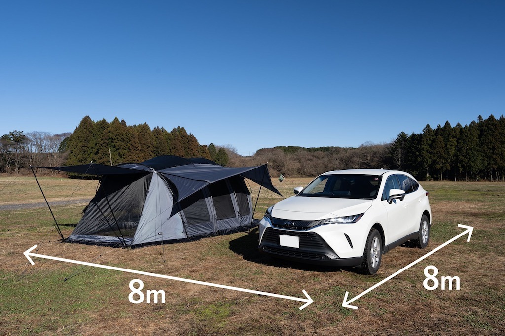 真正的一體化,其作為客廳的有效面積相當寬敞。無需設置其他任何東西,即使放入汽車,也可以在 8 x 8 的場地上擁有足夠空間的佈局。