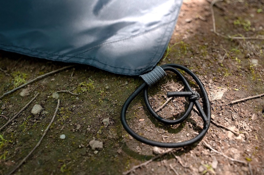 只需將6個橡膠環固定在地釘上,或掛在內帳的地釘上即可。