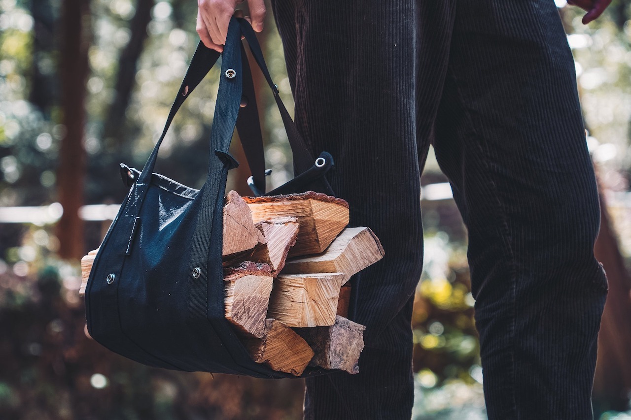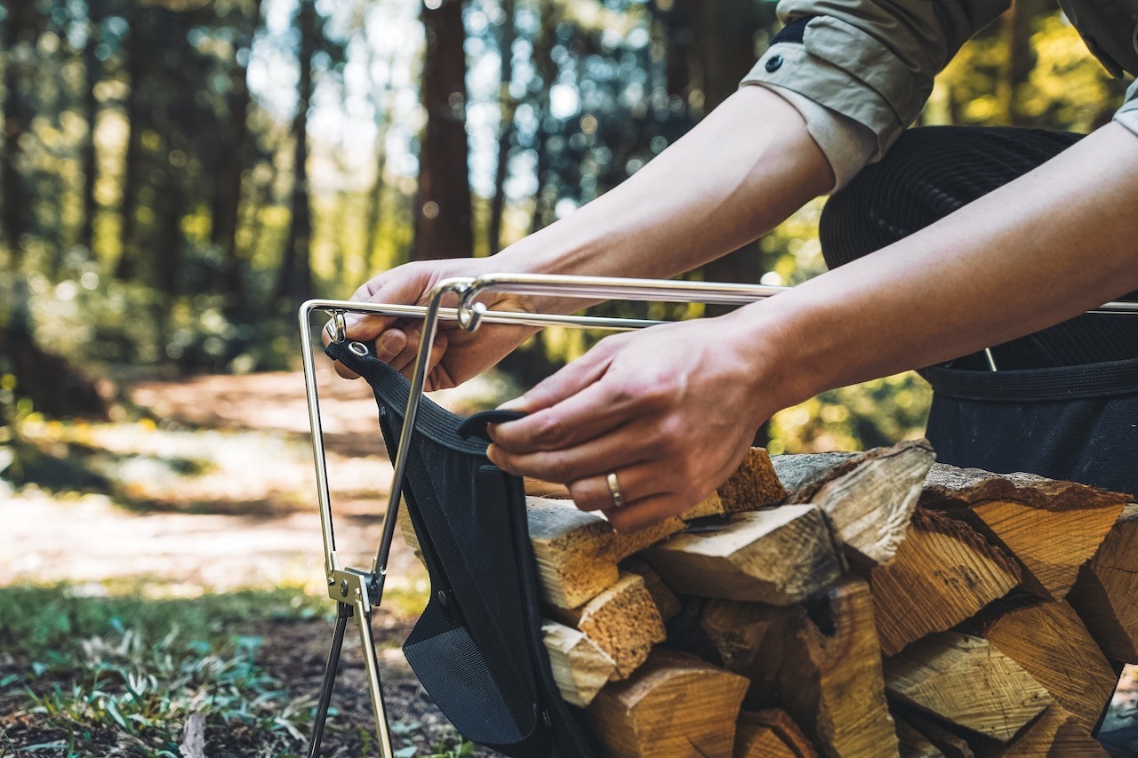 可肩背或手提,方便攜帶柴火。將柴放入後,可以直接放入單元桌中,能有效率地開始焚火。