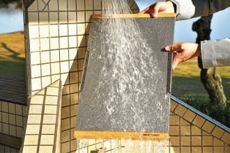 桌面 / 不銹鋼0.8mm厚,特殊的壓花加工,天然木