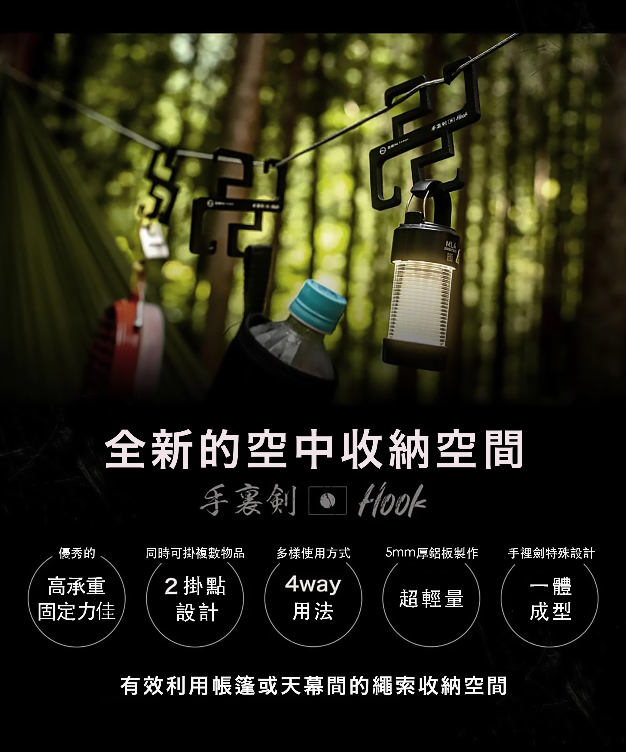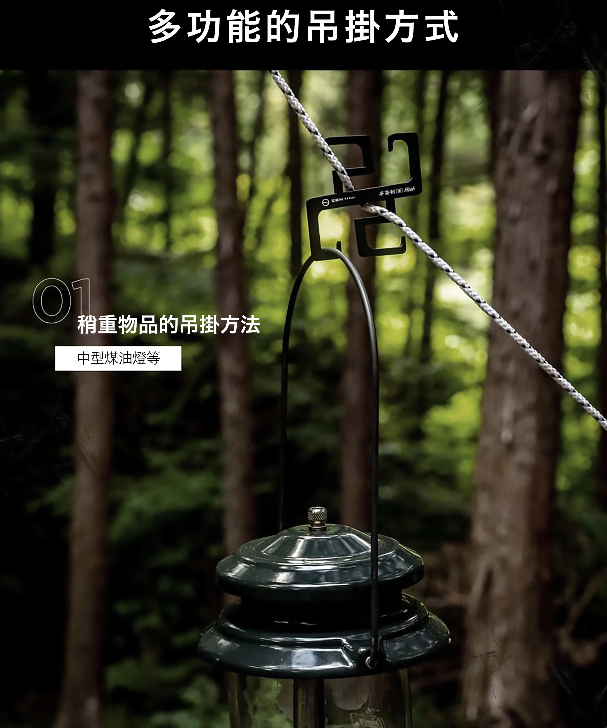 - 懸掛露營裝備而不是平放意味著它不會弄髒。另外,它是一個鉤子,不僅可以掛在繩子上,還可以掛在各種地方,所以可以「存於空中」。