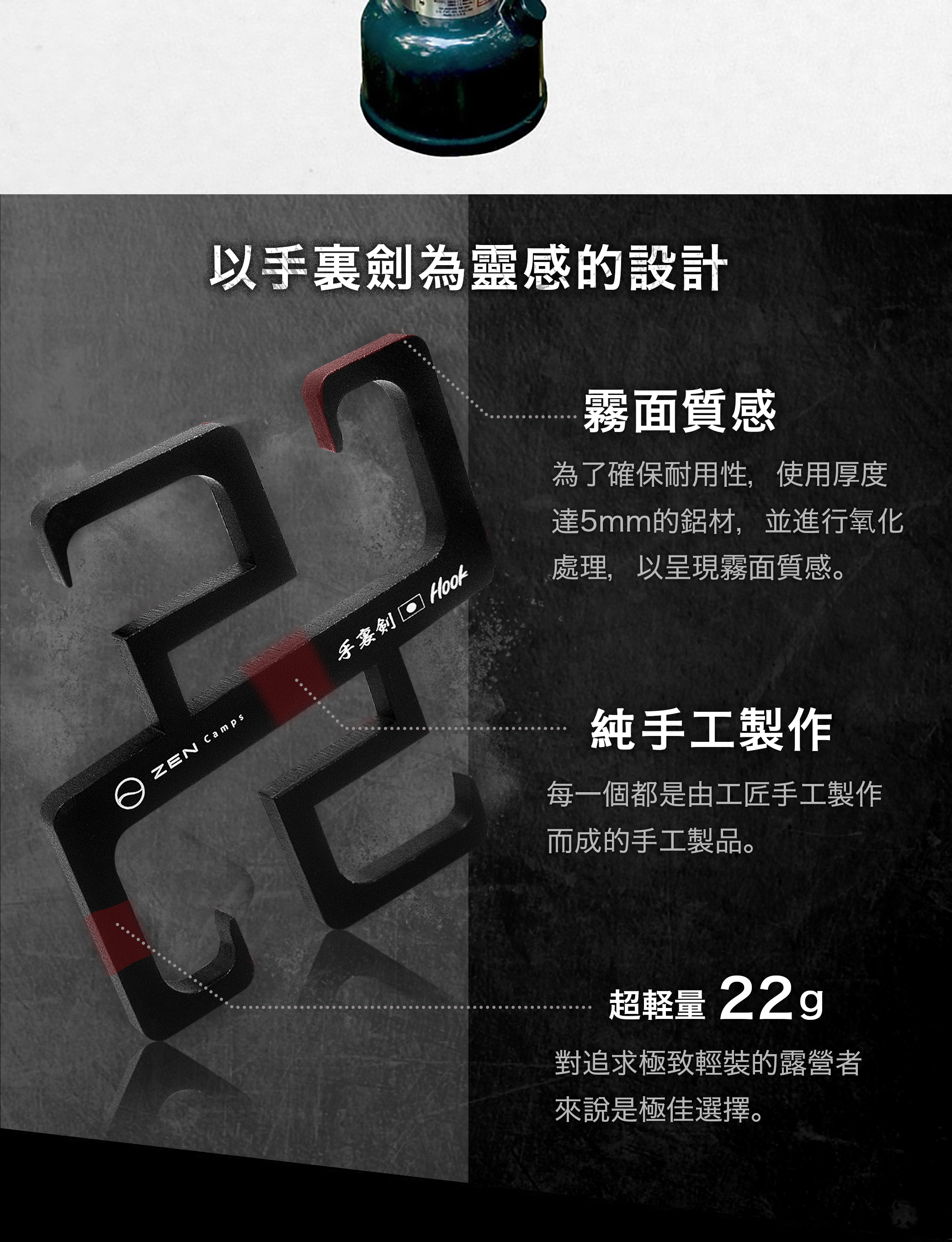 -每件均由5 毫米鋁板切割而成,並經過陽極氧化處理。霧面質感適合任何露營場景。