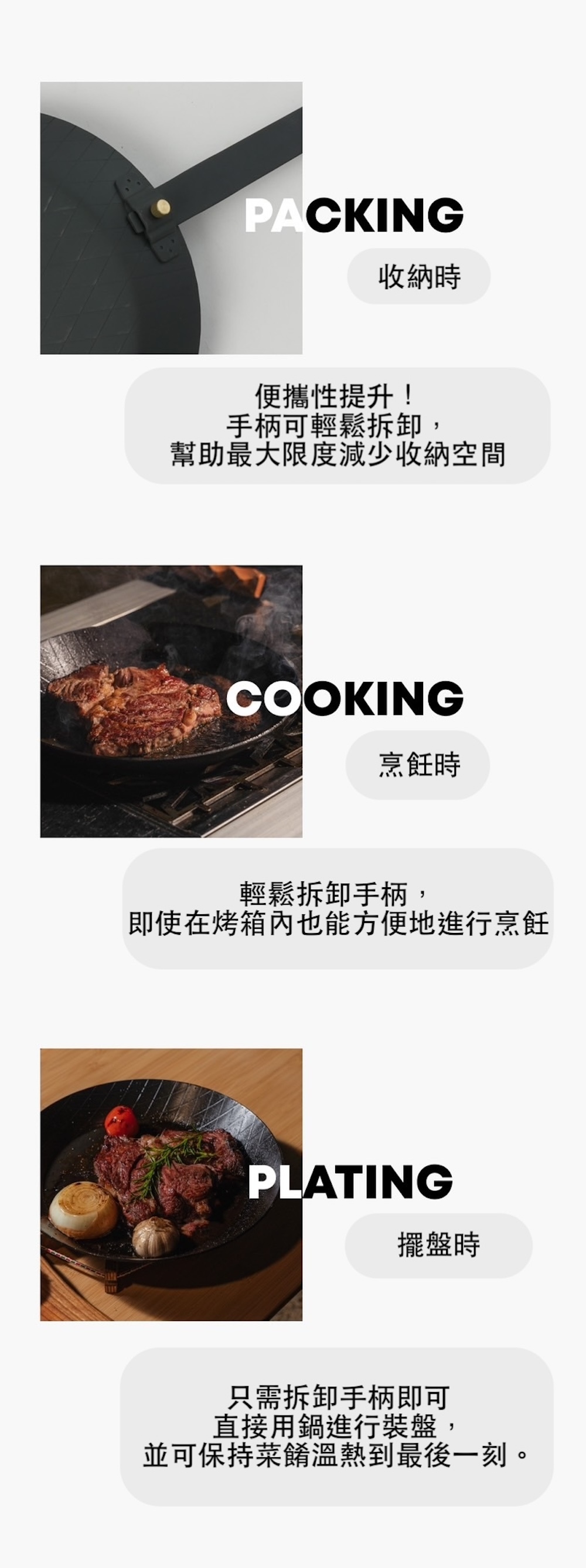 不用再擔心鍋子收納不方便的問題,由韓國800度C推出的具有可拆卸手把的鐵鍋