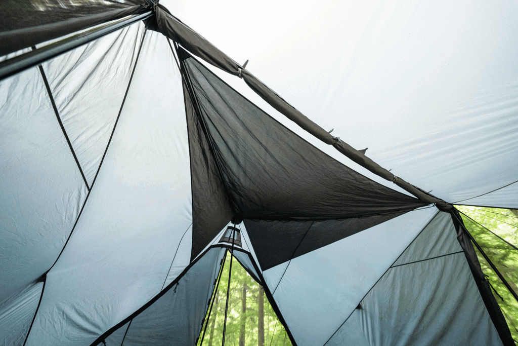 透過天花與內帳頂布形成雙層結構,降低冷凝水直接滴落的情況,提升帳內舒適度。