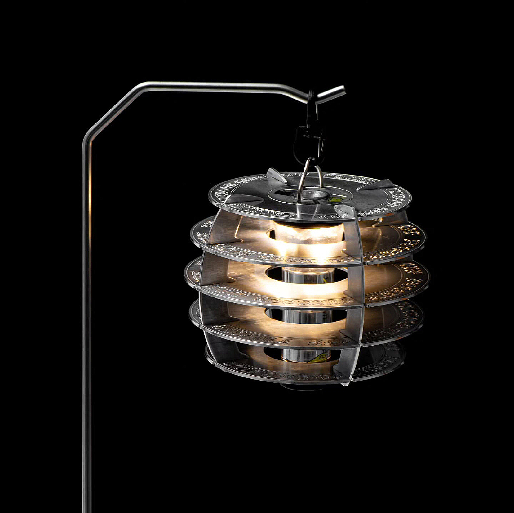 掛上營燈架、桌邊支架或天幕下,都能成為營地視覺核心。
