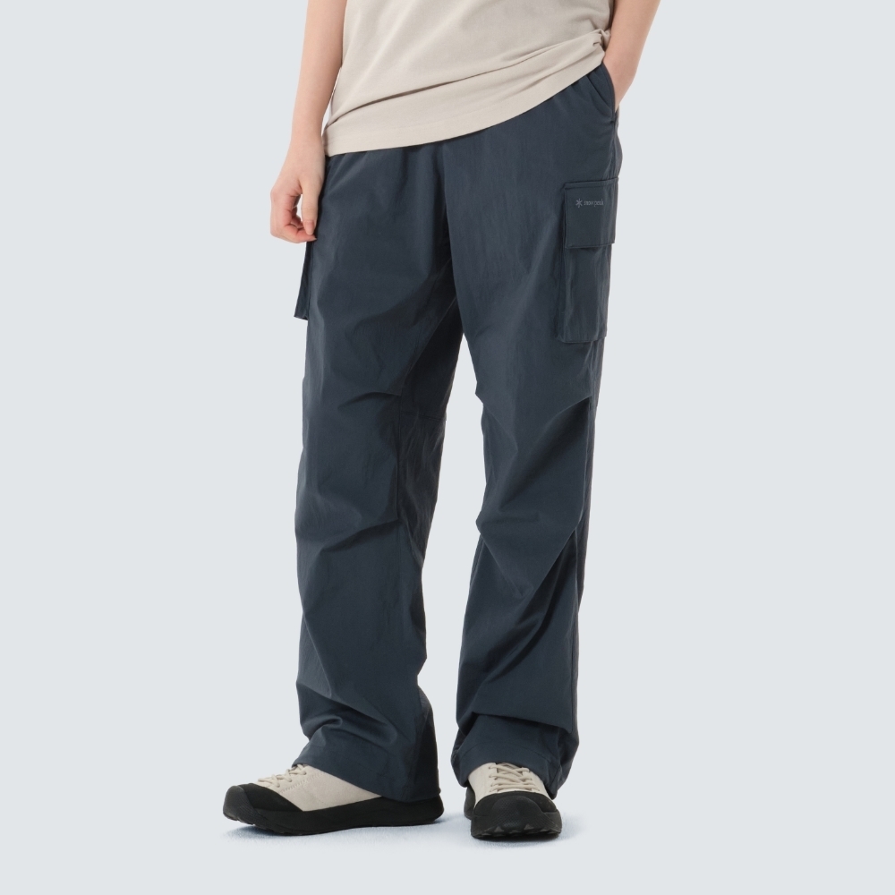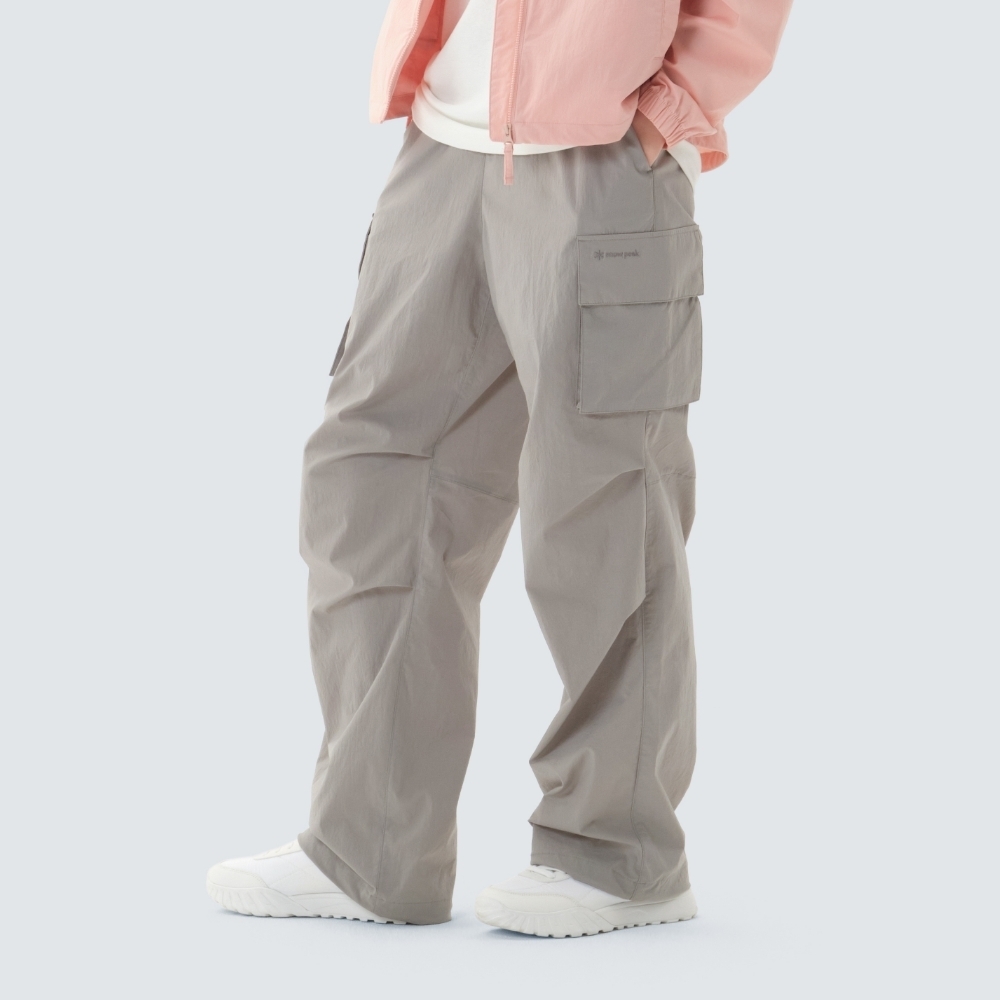 其寬鬆的廓形 (Wide Fit) 結合褲腳的抽繩設計,可自由調節並營造多樣化的輪廓效果;