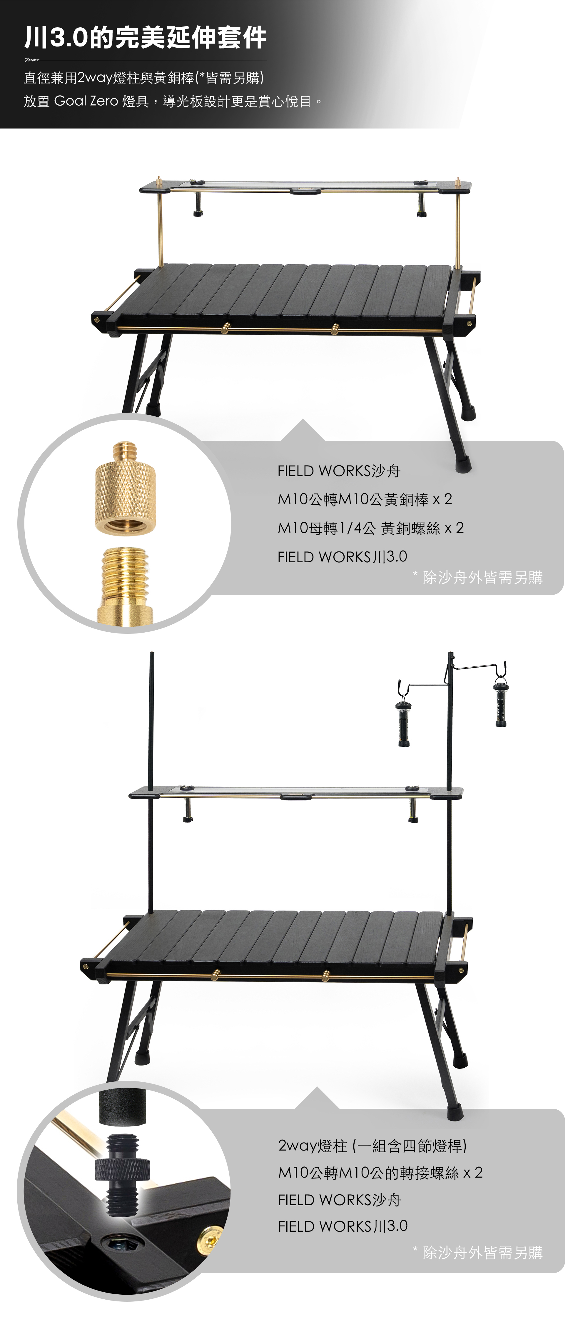 可與2Way燈柱、黃銅棒組合,靈活延伸川桌功能。